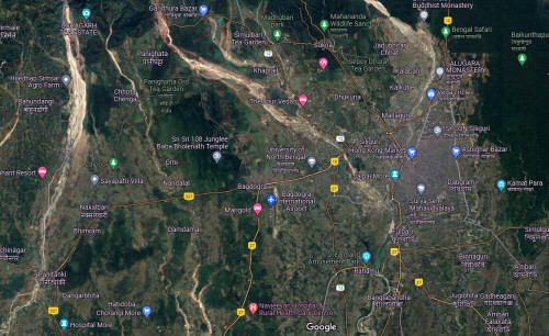 "On the second day we arrived at Jeelpigoree, a large straggling village near the banks of the Teesta, a good way south of the forest: here we were detained for several days, waiting for elephants with which to proceed northwards."