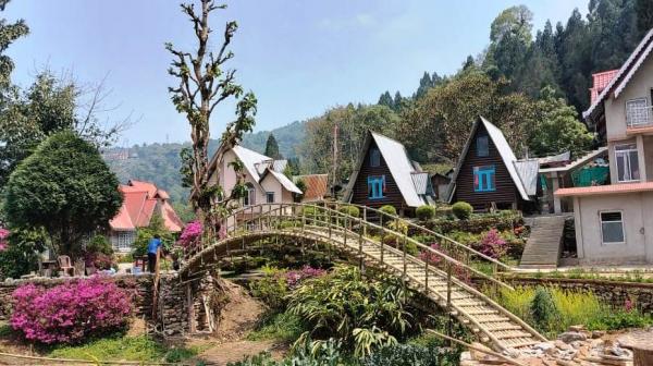 কাফেরগাঁও পৌছতেই সুনীল তামাং-এর উষ্ণ অভ্যর্থনা, যেন সত্যিই অতিথি এলো তাঁর ঘরে। মেঘ কুয়াশা খেলে বেড়াচ্ছে সুনীলের অতিথিশালায়! পাখির ডাক ছাড়া আর কোনো শব্দ নেই গ্রামটায়। স্কোয়াশের লকলকে লতা পাতা ঝুলছে এদিকওদিক। একটা মিষ্টি বাঁশের সাঁকো বানিয়ে রেখেছেন সুনীল। দৃষ্টিনন্দন। কটেজের ভেতর ঢুকে মনখুশ। কাঠ দিয়ে এত সুন্দর ইন্টেরিয়র সাজগোজ, ঘরের সঙ্গে মানানসই সোফা, টেবিল, আলমারি! লোভনীয় বারান্দা! পৌঁছেই মনে হতে লাগল – এত অল্প সময়ের জন্য কেন এলাম!