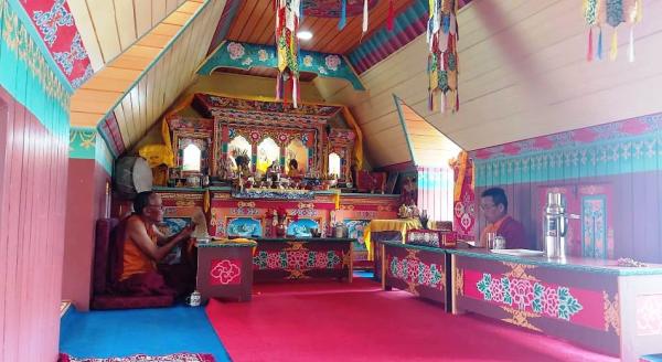 ডাইনিং হলের ওপরতলায় কী যত্ন করে একটা ছোটোখাটো গুম্ফা বানিয়ে ফেলেছেন বৌদ্ধ ধর্মাবলম্বী সুনীল। বুদ্ধ পূর্ণিমার সকালে সেই পারিবারিক গুম্ফায় গিয়ে বসলাম। জানি না, এ সুযোগ আর এ জীবনে হবে কিনা! বুদ্ধের জন্মদিনে, তাঁর বোধিলাভ ও মহানির্বাণ লাভের পুণ্যদিনে পুরো বৌদ্ধ আরাধনা দেখলাম সেখানে বসে। লামা এসে উদার কন্ঠে নানান সুর করে ত্রিপিটক থেকে মন্ত্র পড়ছেন। ছড়িয়ে পড়ছে সেই মন্ত্র পাহাড়ে পাহাড়ে। পুজো শেষে পেলাম বুদ্ধ-পুজোর প্রসাদ।