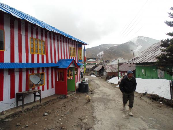 বেশ কিছুক্ষণ পর বরফ বৃষ্টি ধরলে পায়ে হেঁটে আশপাশে ঘুরতে বের হলাম। ছোট্ট এই উপত্যকায় বরফের সৌন্দর্যের মতোই স্থানীয় অধিবাসীদের সাধারণ জীবনযাত্রাও যথেষ্ট বৈচিত্রময়। প্রধাণত বৌদ্ধ, অংশত হিন্দু ও খ্রিস্টান ধর্মাবলম্বী মানুষগুলো ‘ভুটিয়া’, ‘শেরপা’ অথবা ‘প্রধান’ পদবীধারী। মুখ্য ভাষা হিন্দি ও নেপালি হলেও তিব্বতিও বেশ চলে। প্রায় শ-দেড়েক পরিবারের বাস এই পাহাড়ি গ্রামটিতে। টিনের চালের কাঠের তৈরি বাড়িতে বসবাসকারী প্রতি পরিবারের একজন করে পুরুষ সেনাবাহিনী অথবা সরকারি চাকুরিতে নিযুক্ত। অন্য পুরুষেরা পরিবহন বা হোটেল ব্যবসার স্ঙ্গে কৃষিকাজ, ইয়াক ও গবাদি পশু পালন করে। আলু, ভুট্টা, রাইশাক ও বাঁধাকপি এখানে চাষ হয়। ইয়াকের দুধ ও মাংস এরা পুড়িয়ে বা রান্না করে খায় –তাছাড়া লোম ও চামড়া থেকে তৈরি নানা সামগ্রী বিক্রি করে। দিন-রাতের পাহারার জন্য সব বাড়িতে থাকে দু-তিনটে জাঁদরেল লোমশ কুকুর। অল্পসময় ঘুরে বেড়ানোর ফাঁকে বৃষ্টি ও বরফ পড়ার কারণে সন্ধে নামলো সময়ের আগেই। নাথাং উপত্যকায় ‘সোলার সিস্টেমে’ আলো জ্বলে উঠছে এক এক করে। মোবাইলের দোকানে কথা বলে জানলাম –এখানে রোমিং নেই, ফলে বিএসএনএল নেটওয়ার্কে ল্যান্ড বা মোবাইলে যত খুশি কথা বলা যায়। তবে জেনে রাখা ভালো, পূর্ব-সিকিমের সীমান্ত অঞ্চল সংলগ্ন নানা জায়গায় মিলিটারি ক্যান্টনমেন্ট থাকার কারণে ছবি তোলা সহ বেশ কিছু বিধিনিষেধ জারি আছে ।